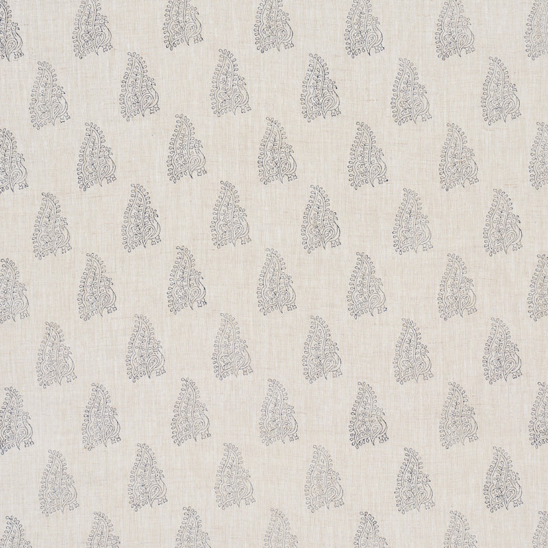 PEACOCK LINEN HAND BLOCKED PRINT NAVY & FLAX